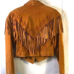 Vintage suede jacket that is rockin' the fringe and the 80's shoulder pads, but it still looks like new! Measures approx