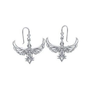 Phoenix with Fleur De Lis Sterling Silver Pendant and Earrings. 100% genuine .925 Sterling Silver handcrafted for the Peter Stone Company.