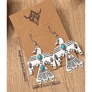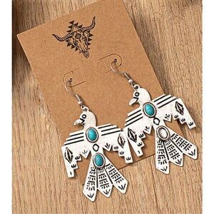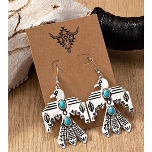 Gorgeous Thunderbirds in silver accented with turquoise in these beautiful pierced fishhook earrings. Add style to any western or southwestern outfit.