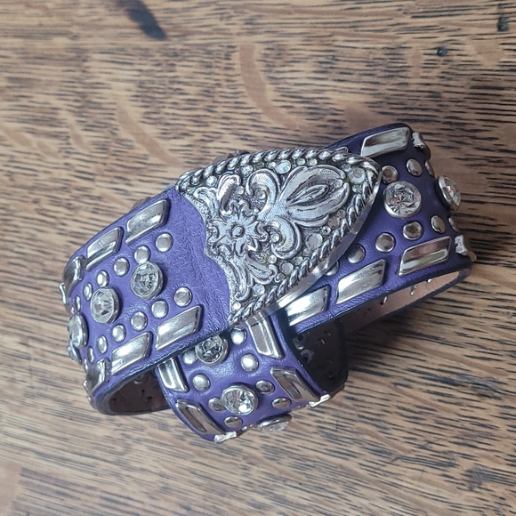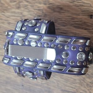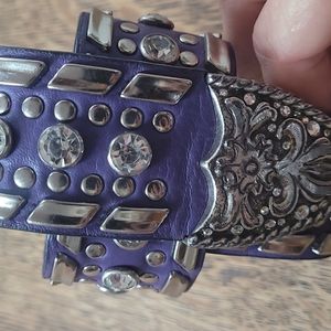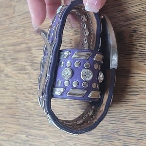 vintage genuine leather purple phone case with crystals n studs ,has clip for your belt or jeans n has a Velcro fastener , maybe sterling silver western cigarette case not exactly sure but its super cute n flashy