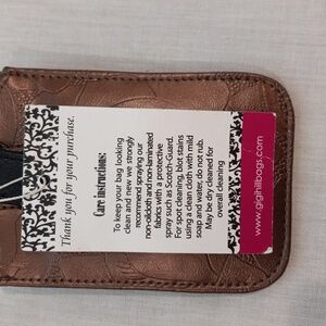 The Bette, electronics case, floral embossed bronze copper, case designed for small phone, bottom inside has an elastic band to keep phone from sinking too low in the case. NWT.