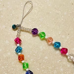 Phone string!!! These are so cute and fun, make your phone into an accessory!! Extra strength nylon cord holds even the biggest phone, I have an iPhone pro max 13!!! It’s strong and will last! This one is a dice 🎲 mix with a turquoise jewel for the charm!! Super strong 💪!! Custom made!