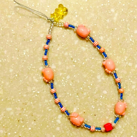 Phone string!!! These are so cute and fun, make your phone into an accessory!! Extra strength nylon cord holds even the biggest phone, I have an iPhone pro max 13!!! It’s strong and will last! This one is a hello kitty 🐱 mix with a gummy bear 🐻 for the charm!! Super strong 💪!! Custom made!