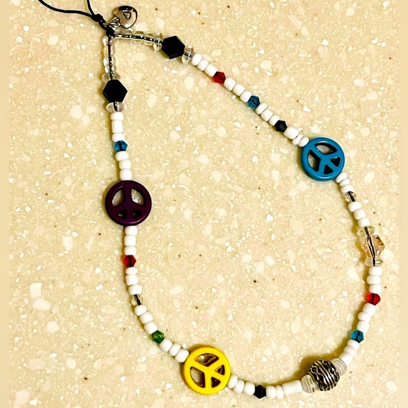 Phone string!!! These are so cute and fun, make your phone into an accessory!! Extra strength nylon cord holds even the biggest phone, I have an iPhone pro max 13!!! It’s strong and will last! This one is a peace sign ☮️ mix with a love heart ❤️ for the charm!! Super strong 💪!! Custom made!