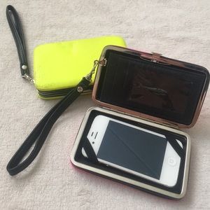 Two neon colored phone wallets. Fits the iPhone 4s. They also can fit the iPhone 5 but it's a tight fit. Neon pink & neon yellow. Selling both together.