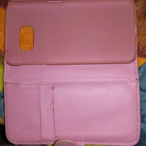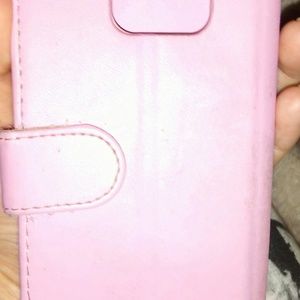 A hello kitty phone case with place for card holding for a samsung LG S6
