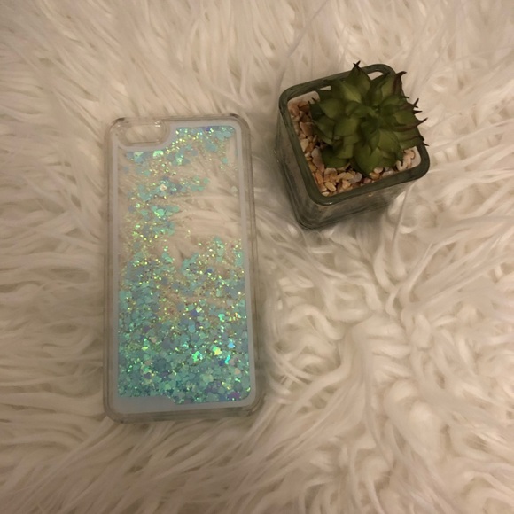 Cute green and purple water phone case with heart shaped glitter. In good used condition. Leave and offer ❤️