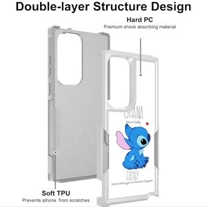 This is a white phone case with the stitch cartoon as seen in the picture. Never opened.