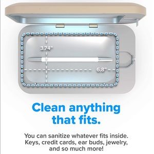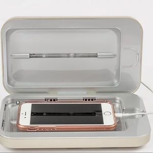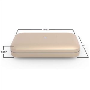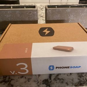 New in og packaging- never opened. Selling v3 in gold(see pics on box for actual color) PhoneSoap 3 is the first cell phone charger that cleans/sanitizes your phone while it charges. PhoneSoap's medical-grade UV lights eliminate bacteria, viruses & germs that live on your phone. PhoneSoap can sanitize more than just smartphones—>keys, credit cards & money. The UV-C lights inside PhoneSoap kill germs without harmful heat, liquids or chemicals.