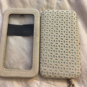White and light blue phone/wallet wristlet. Perfect for going out or to the beach