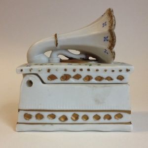 Phonograph Toothpick Holder Vintage Trinket Jewelry Box Unique Ceramic Floral