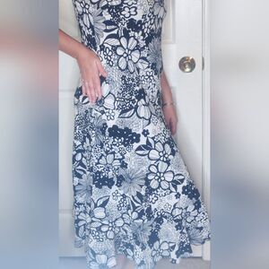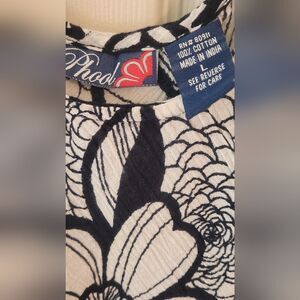 Phool L White Black 100% Cotton Vtg 90s Floral Print Slvlss Women Midi Sundress