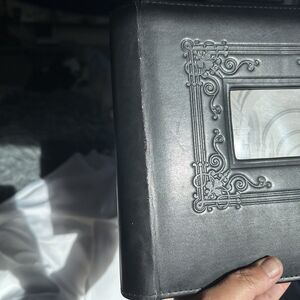 Photo Album Black with place for a Picture in front cover holds 160 photos 4x6 wear on the corners and spine, pictures included