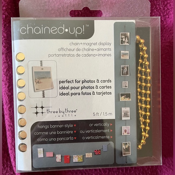 Never been used, received as a gift. 5ft chain & 8 heavy-duty magnet display for pictures &/or cards. Gold chain with magnets included.