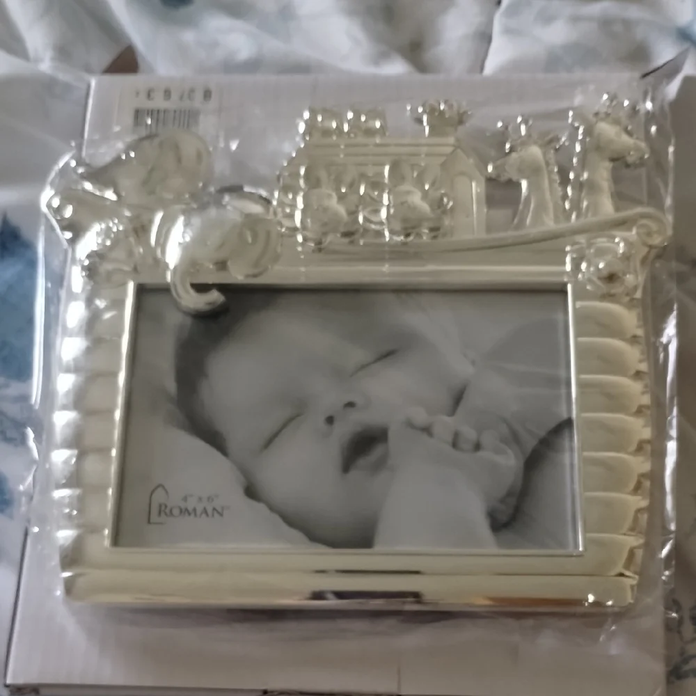 Noah's ark themed photo frame for a 4 by 6 inch picture made by Roman part of Caroline collection great baby shower christening or a gift for a new parents ( Zinc Alloy lead free) new without tags in original box