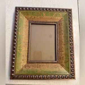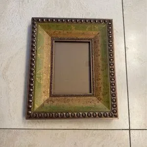 Pier 1 Photo Frame -Measurements: 10”x12” -Seems to best fit 5x7 photos -Has hooks for hanging or stands up *Some scratches/chips along the edges (see photos) but not very visible from front