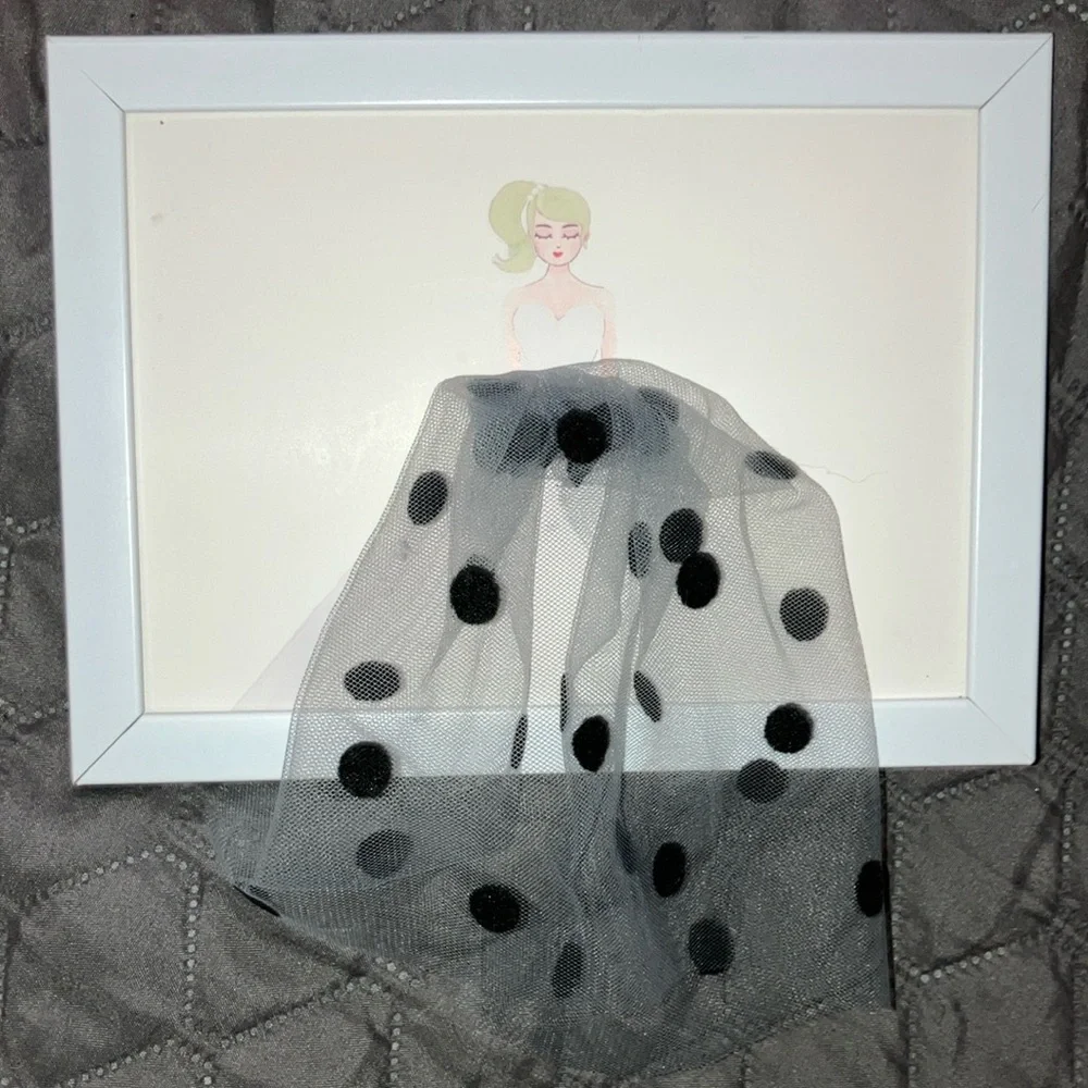 Great for staging for sellers or to hang in your office. Like new condition. Dress hangs about 2in below frame. Frame fits 5x7 should you want to change it!