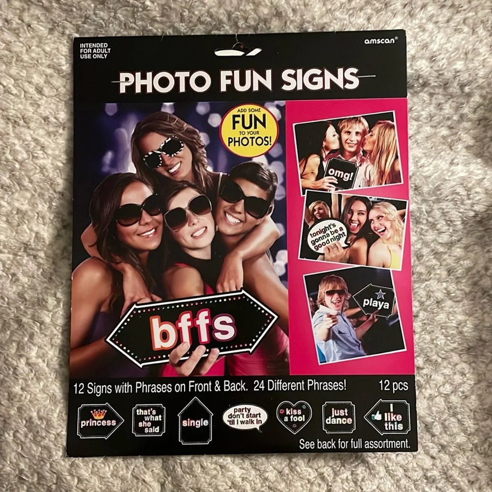 Create memories that will last a lifetime! The set comes with 12 different double-sided props, making for a total of 24 different quotations. Hold up signs that say things such as "Single," "Playa," and "Someone, alert the paparazzi." You and your friends will have a blast taking photos with the Quotations Photo Fun Signs!