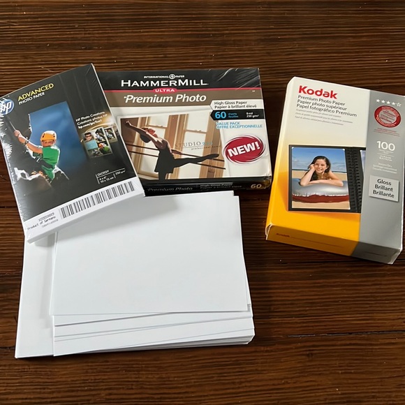 Bundle of Hammermill, HP, and Kodak photo paper. Includes 2 sizes (mostly 4x6, some 5x7). Ideal for high-quality printing.