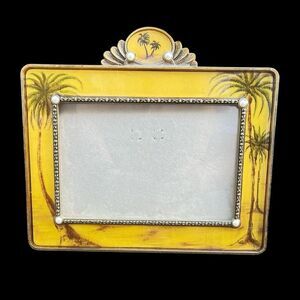 Photo Picture Frame Yellow Enamel Palm Trees Tropical Faux Pearls Gold Tone 4x6”