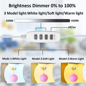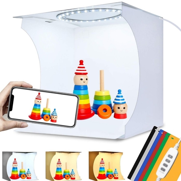 . Adjustable Light Photo Studio Box, Mini Photo Light Box, Portable Photography Lighting softbox 6 Color Backdrop kit with Ring White Light 6500K Warm Light 3200K 24cm x 23cm x 23cm