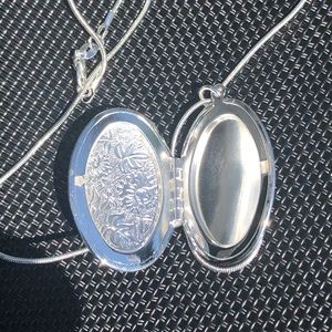 Gorgeous solid 925 purity Sterling Silver photo necklace . Sneak style chain in length 19”.