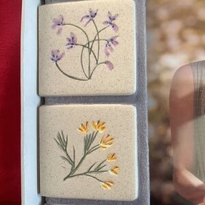 Hand painted pastel flowers adorn the tiles