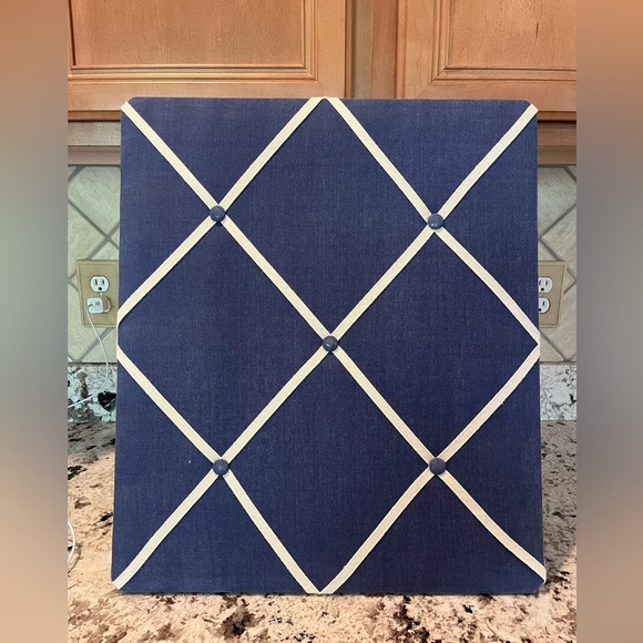 Chambray & Beige Padded Photo/ Memory Board. Excellent condition. Can be hung vertical or horizontal.