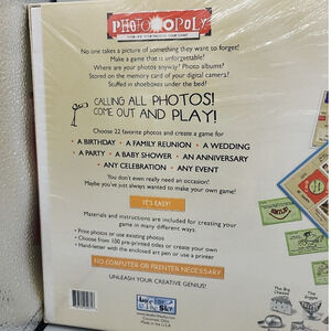 Photo-opoly Themed Monopoly Game *Use Your Own Photos* Brand New Factory Sealed. This would make a very special personalized gift for someone. Family, Game night, unique. The factory sealing is peeling slightly on one corner. Ships quickly and securely.