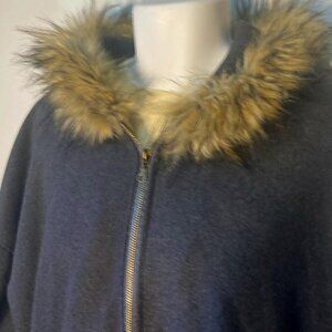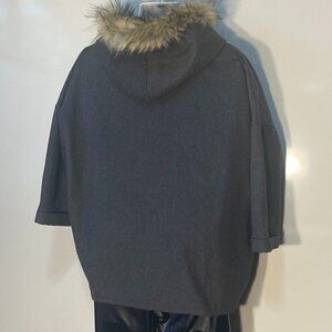 Phuyu Fashion Gray Parka hooded faux fur Jacket Coat
