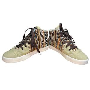 Phuyupata Peru Womens Size 8 High Top Tan Sneakers Aztec Print Woven Handmade
