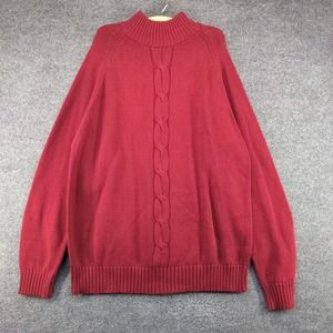 Phys. Sci. Men's Cable Knit Pullover Sweater Red XL Mock Neck Cotton