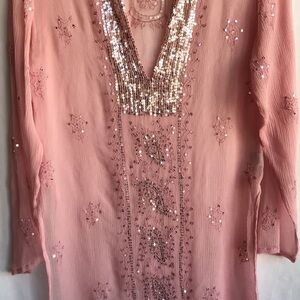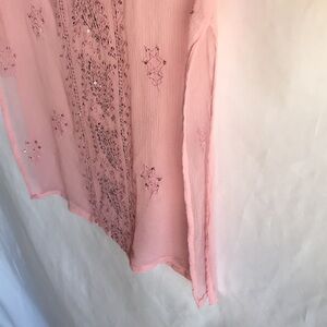 Pia Hallstrom pink semi-sheer tunic with silver sequins, size M