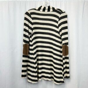 Piacé Boutique Womens Open Cardigan Gray Stripe Long Sleeve Elbow Patch Small