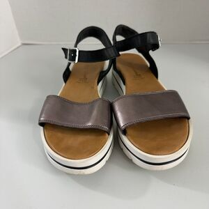 Piampiani Women's Platform Sandals Shoes Bronze Black Leather Size 39 US 8 - 8.5