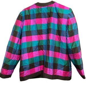Piankusol Women’s Jacket Taffeta 100% Thai Silk Plaid Collarless Jewel Tones Size XL
