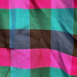 Piankusol Women’s Jacket Taffeta 100% Thai Silk Plaid Collarless Jewel Tones Siz
