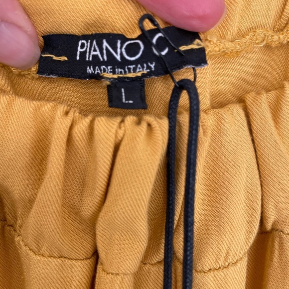 Piano C Dress - 3/4 Length Sleeves Midi Off Shoulder Size L Off Yellow color