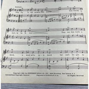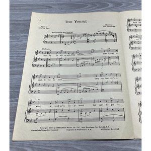 Piano Sheet Music Too Young Johnny Desmond 1951 Sylvia Dee Vintage