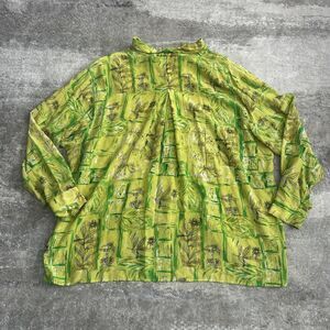 Piano Shirt Womens 3X Vintage Floral Leaf Print Long Sleeve Button Up 100% Silk