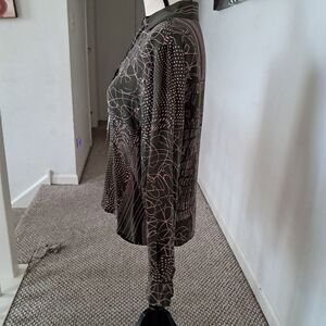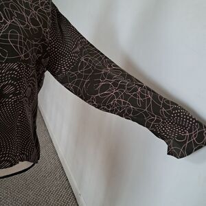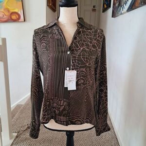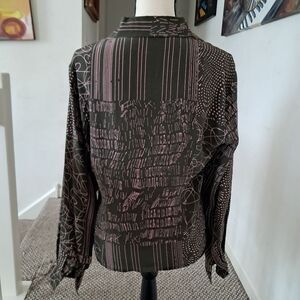 Piano Top Women's Medium M Olive Green Pink Abstract 100% Silk Button Up Career