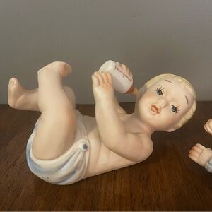 Piano babies are porcelain figurines that were popular during the late 19th and early 20th centuries. They were typically placed on top of pianos to add a decorative touch to the instrument. These figurines often depicted babies or young children in various poses and outfits.
