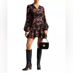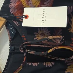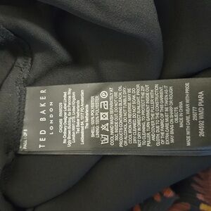 Model measurements: 5'9" height, 33.5" bust, 23.5" waist, 34.5" hips, wearing a Ted Baker size 1 or US 4