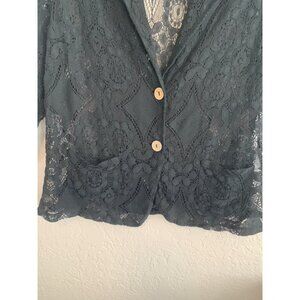 Piazza Del Tempio Made in Italy Black Crochet Lace Cropped Jacket Pockets M