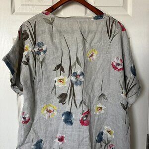 Really pretty pale gray/silver linen box shaped blouse with floral pattern & cuffed short sleeves from Italy. Doing a massive closet cleanout so feel free to bundle!