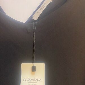 Piazza Italia Sheer Lined Black Silky Knee Long Dress Women’s Size Large