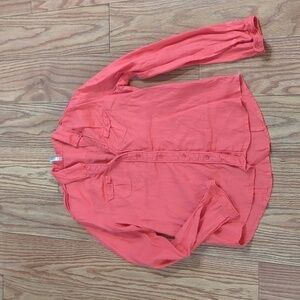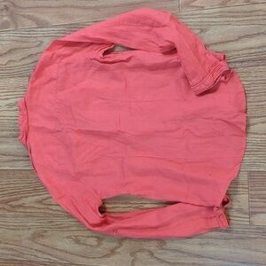 Piazza Italia coral pink linen blend button-down shirt with shoulder tabs, M