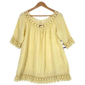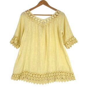 Piazza Roma XS Yellow Linen Top Crochet Lace Blouse Boho Bohemian Made in Italy