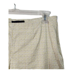 Size IT 44 which is equal to a US size 8. Beautiful yellow and brown micro geometric abstract pattern.