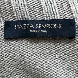 Beautiful beige wool knit button wrap fringe sweater by Piazza Sempione. Features a refined texture. Soft. Excellent condition. Made in Italy.